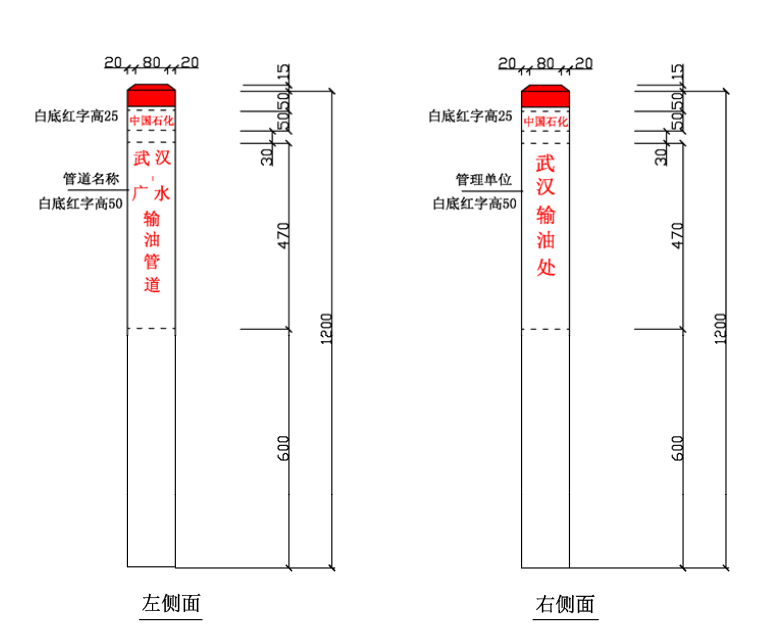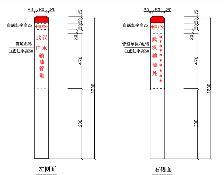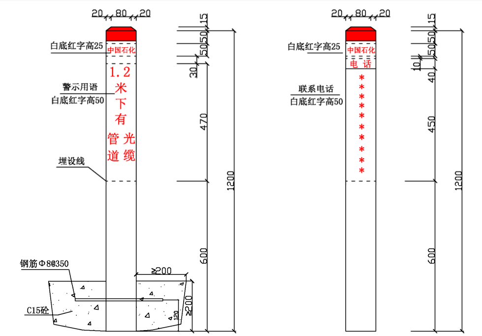 ⑴ 加密樁/通信標識均標注中國石化名稱、管道名稱、警示用語、管理單位和聯(lián)系電話。