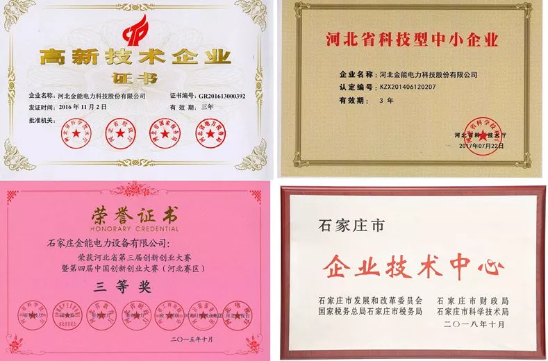 金能電力榮獲“高新技術(shù)企業(yè)”、“科技型中小企業(yè)”等多項榮譽(yù)