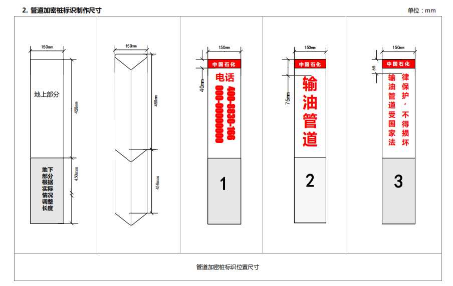 2. 管道加密樁標識制作尺寸